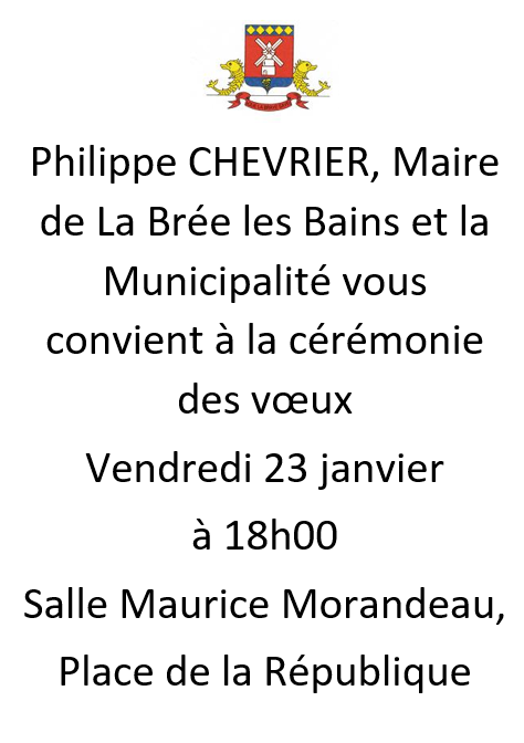 Cérémonie des Voeux + Ajouter à mon Agenda Google + iCal / Outlook export 00 jours 00 heures 00 minutes 00 secondes Date 23 Jan 2026 Heure 18:00 - 20:00 Lieu Salle Morandeau à coté de la Mairie Organisateur Mairie Téléphone 0546478311 Email mairie@labree.fr Partagez cet événement janvier 2026 Jan 17 2026 Conférence Magellan Le premier tour du monde Salle Morandeau à coté de la Mairie Jan 23 2026 Cérémonie des Voeux Salle Morandeau à coté de la Mairie Pas d'événement actuellement programmé.